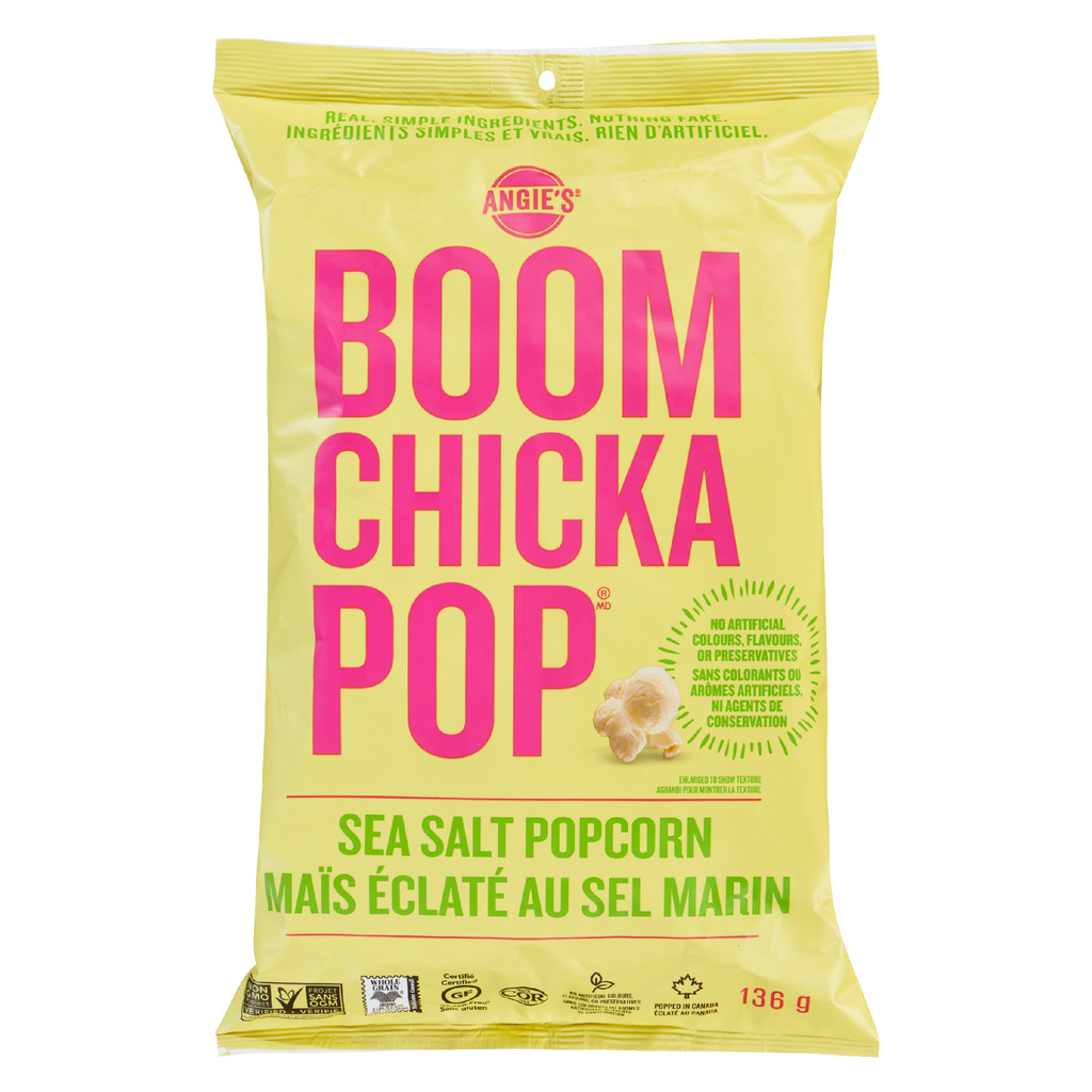Angie's BOOMCHICKAPOP ready‑to‑eat popcorn in bulk cases. Each case contains 8 bags. Perfect for cafes, offices, and resale.