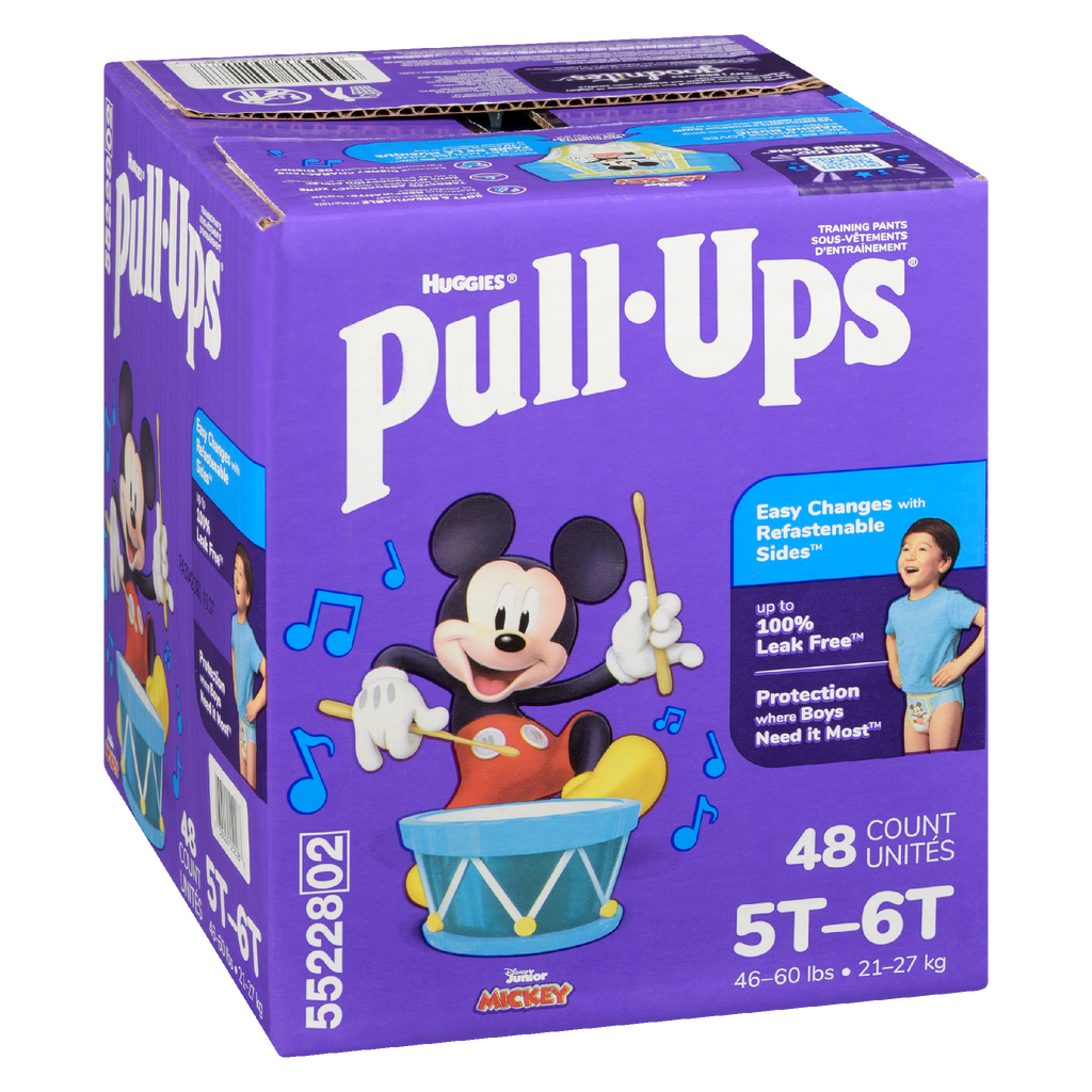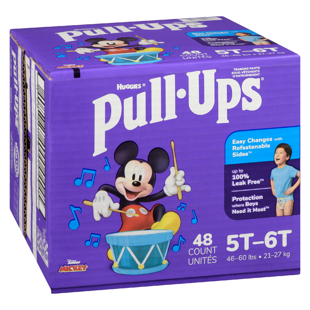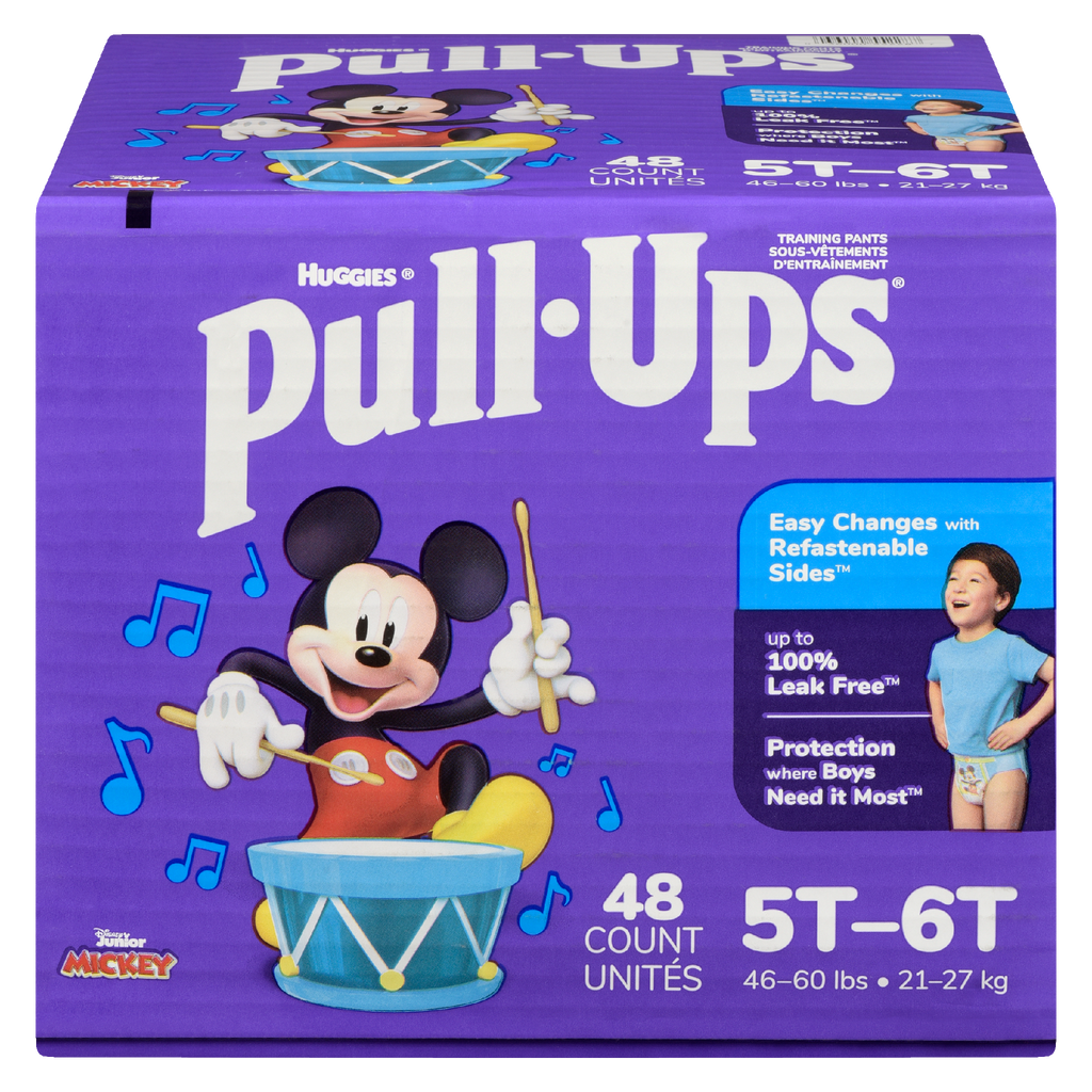 Huggies Training Pants Pull-Ups Boys Size 5T-6T(1X48'S) – 48 'S — Training pants with stretchy sides, easy up and down and fun designs for toddlers learning to potty train. Case format: 1 × 48 'S.