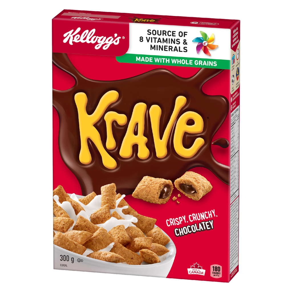 Kelloggs Cereal Krave Chocolate (10X300G) - Crunchy multigrain cereal shells with a smooth chocolate flavoured filling made with real chocolate for a sweet treat any time of day. Case format: 10X300 g.