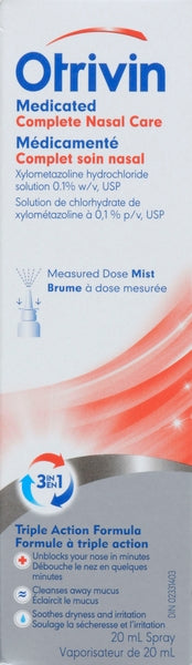 Otrivin Complete ( 6 X 20ML ) – 20 mL — Nasal spray delivering fast relief from nasal congestion by reducing swelling and clearing blocked passages. Case format: 6 × 20 mL.
