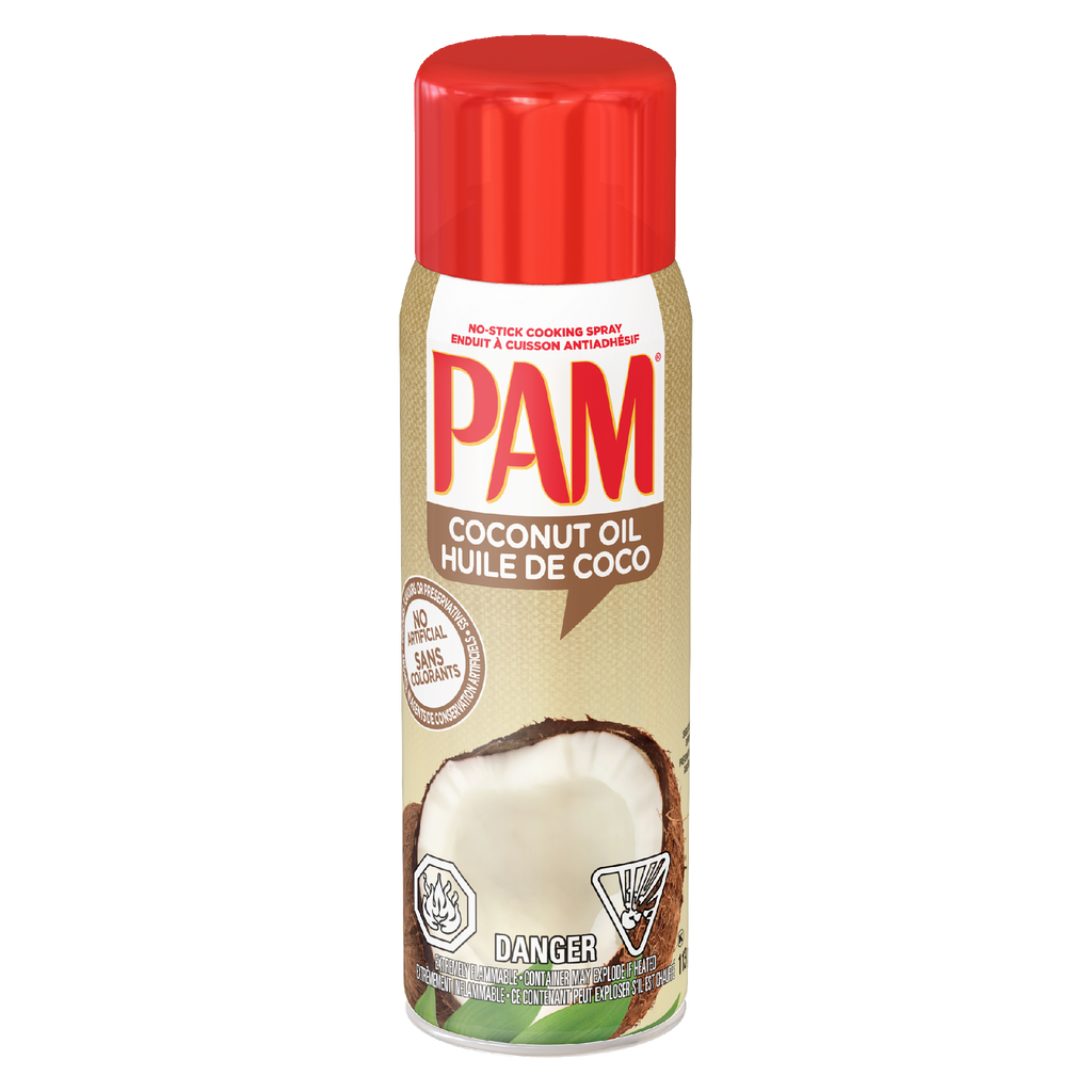 Pam Spray Coconut Oil ( 12 X 113G ) – Coconut Oil — Provides unbeatable no-stick performance for cooking and baking; easy to use and keeps food from sticking. Case format: 113 g.