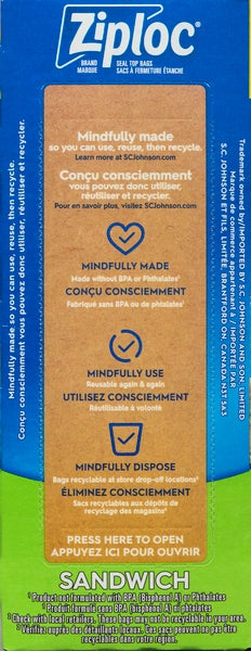Ziploc Sandwich Bags — durable, BPA-free sandwich bags with Grip ’n Seal™ technology for on-the-go lunches and snacks.