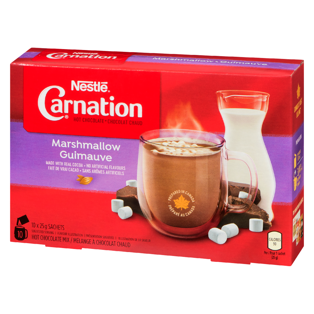 Carnation Hot Chocolate – 25 g and 450g — Rich & Creamy & Marshmellow hot chocolate mix for a smooth, chocolatey drink. Case format: 10 × 25 g.