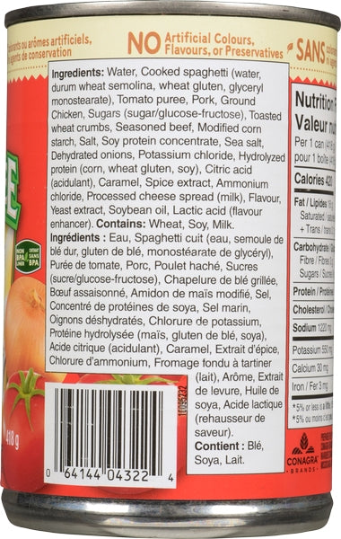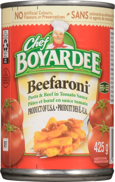 Chef Boyardee Pasta (24X425G) – 425 g — heat-and-serve pasta in tangy tomato sauce. Case format: 24 × 425 g.