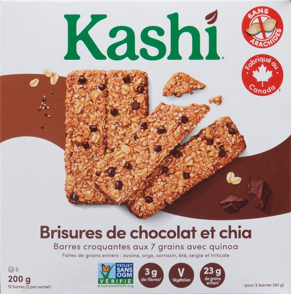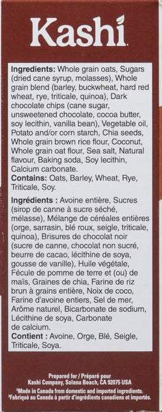 Kashi Crunchy 7 Grain Bars Quinoa Chocolate Chip (12X200G) features whole roasted almonds and hearty rolled grains with a chocolate and espresso twist; made with simple, natural ingredients and non-GMO verified. Case format: 12 X 200 g.