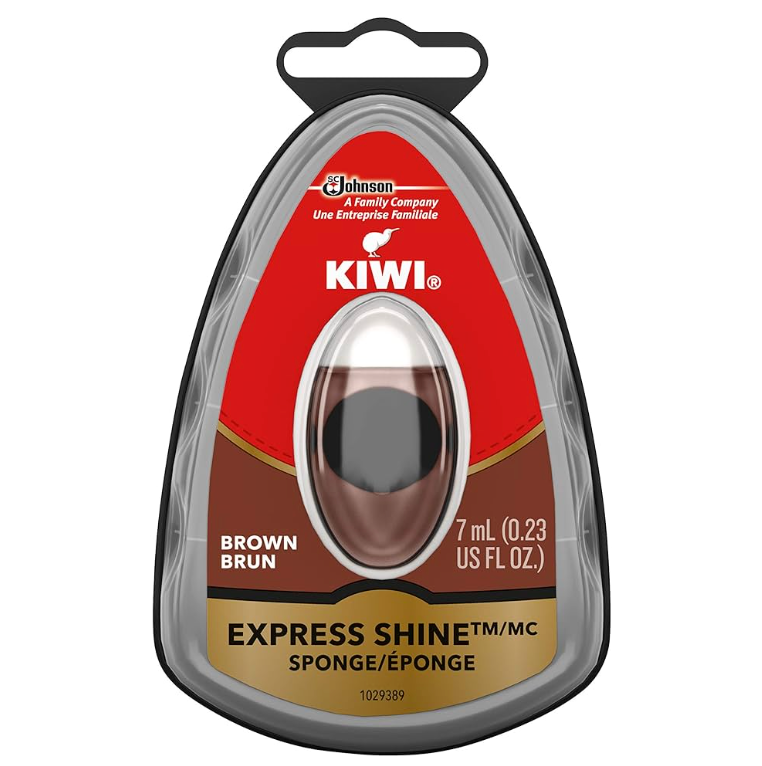 Kiwi Express Shoe Shine Sponge contains shine liquid for a quick, fresh shine and is ideal for leather shoes; no mess and no buffing required. Case format: 12 X 6 mL.