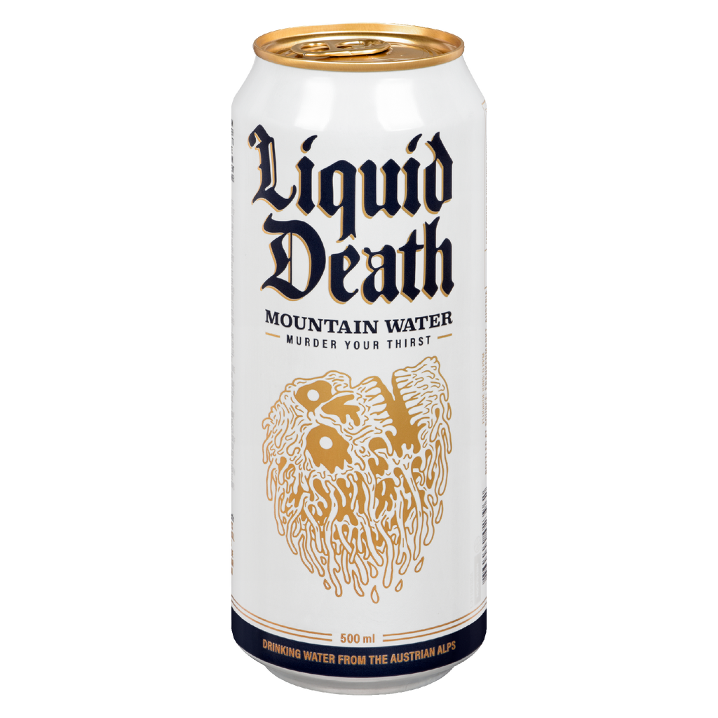 Liquid Death Water Can (12X500ML) - sparkling mountain water sourced from natural springs and packaged in recyclable tallboy cans for a crisp, refreshing taste. Case format: 12 x 500 ML.