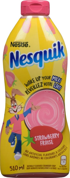 Nesquik Syrup Less Sugar ( 12 X 510ML ) – Strawberry — Flavoured syrup to add to milk or desserts. Case format: 12 × 510 mL.